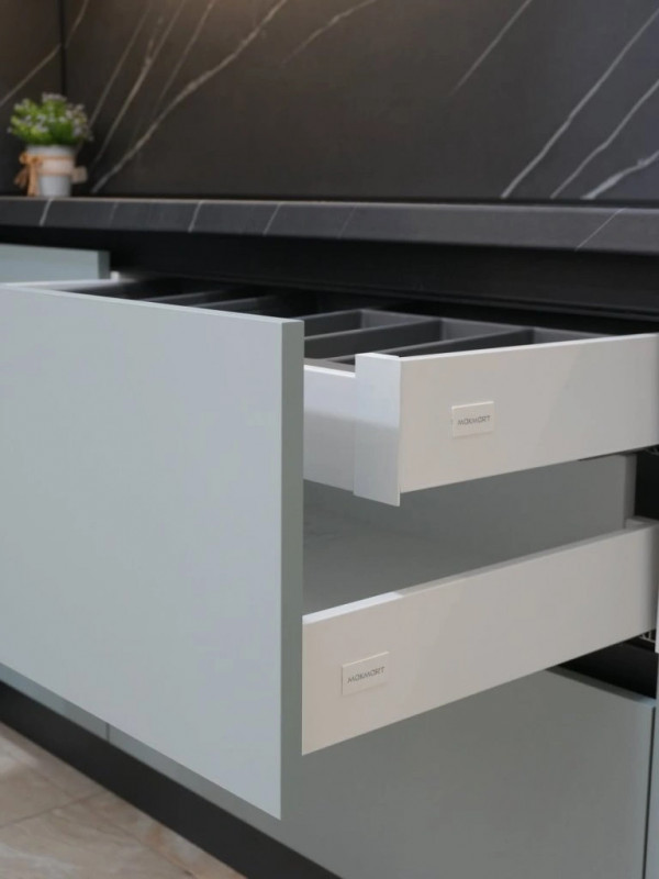 под встроенную технику и удобными системами хранения.